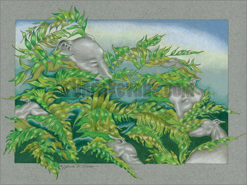 This large flower has variegated pedals that play tricks on the casual observer. I see the contours and swift movement of our graceful friends within every wind-swept rustle. Can you find all 25?