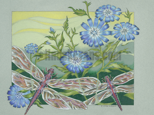 Periwinkle blue flowers spring from twig-like stalks and reach up to greet my greyhounds on our summer afternoon walks. Visiting dragonflies hover as the Mill river rushes by.