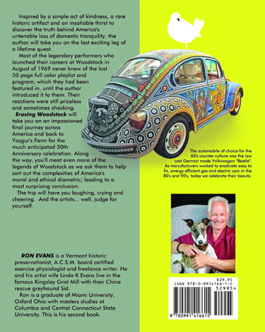 Vermont author Ron Evans breaks new ground with his first non-fiction adventure. Chasing Woodstock is a must have for the coffee table of "hippies" from every generation ( millennial to boomer ) with visually exciting content and more than 100 exclusive photos.